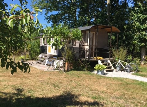 Au bord de l'Es, juste le long du Pieterpad, dans le joli village de Schipborg, au milieu du parc national le Drentse Aa, tu trouveras cette Caravane nouvellement construite et agréablement meublée. Équipé de tout le confort. Dors dans un lit-coffre (210x160), douche et toilettes privées. Si tu as de la chance, assis sur la terrasse devant le wagon au soleil du soir, tu verras une mère chevreuil avec ses petits gambader à l'orée du bois. Un vélo (de courses) est disponible, le wagon est équipé de chauffage, d'une douche chaude et peut être bien utilisé en hiver. Sois le bienvenu, les promeneurs de pieterpad peuvent aussi passer une excellente nuit ici. Une fois de Schipborg à Groningue et une fois de Schipborg à Rolde. Les transports publics sont bons pour les deux.